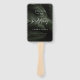 Moody Tropics, Hochzeitsprogramm Handfan. Dunkle tropische Palmenfrontenfotografie. Features, White Typografy Design Stil Mix aus edgy Skript und fett-Typ.