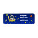 Moon Adventure Return Address Label - Ein Astronaut, eingebettet in einen Halbmond, hält sich in Frieden. Er ist von Sternen umgeben, Saturn, einem Raumschiff. Für Ihren Namen und Ihre Adresse stehen mehrere Zeilen zur Verfügung. Ideal, um die passenden Geburtstagseinladungen zu versenden, eine Grußkarte zu erhalten und Dankeschön-Karten zu erhalten. Ideal für Geburtstagsfeiern für alle kleinen Astronauten in Ihrem Leben!