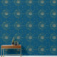 Diese atemberaubende Tapete verbindet die Opulenz des Goldes mit der tiefen, ruhigen dunkelblauen Farbe und schafft so einen luxuriösen und bezaubernden Rahmen. Im Zentrum des Designs strahlt ein strahlender Halbmond mit goldener Pracht und strahlt einen himmlischen Charme aus. Die mit symbolischen bösen Augen und glänzenden Sternmotiven geschmückte Tapete verströmt eine Aura des Schutzes und Mystik. Die aufwändigen Muster und die kräftigen Farben harmonieren harmonisch und machen diese Tapete zu einer idealen Wahl, um einen eleganten und faszinierenden Raum zu schaffen, der sowohl Eleganz als auch ein Gefühl des Staunens weckt.