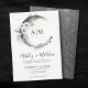 Boho Star Crescent Moon Celestial Monogram Wedding Einladung. Feiern Sie einen Abend unter dem Sternenhimmel mit diesem leichtsinnigen, himmlischen Hochzeitsthema. Ein elegantes und dennoch spielerisches Aussehen mit einer Aquarellfarbe Mitternachtsmond, goldenen Sternen und weißen Blume, Federn und anderen Akzenten, die ein wenig bohemisches Flair verleihen. Die Rückseite hat eine dunkelsternige Nachtwasserfarbe. Schwarz, Weiß, Gold und Grau färben sich insgesamt. Ein eleganter Mix aus Schriftzypografie und einem serifenlosen Schriftart. Sie werden einen mystischen Abend unter diesem Halbmondhimmel haben. Erhältlich als gedruckte Einladung oder als digitale Einladung zum Herunterladen, dass Sie E-Mail senden können oder vor Ort gedruckt haben!