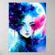 Moon Child. Fantasy Art mit einer schönen, surrealen Göttin im Stil der Animation. AI-generierte Kunstwerke.