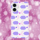 Magst du himmlische Handy-Fälle? Dieses Handy Gehäuse hat ein Muster von Mond, Sternen und Wolken in verschiedenen Farbtönen von Rosa und lila.
