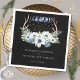 Moon Crystals Blume Boho Metaphysische Hochzeit Napkins mit schwarzem Hintergrund. Dieses Set der Hochzeitsfeier in Boho besticht durch seine Aquarellhalbierung und Vollmondphasen mit Blumen und Blumen, Kristallkernpunkten, Grünpflanzen und Antlers. Eine perfekte Wahl für eine mystische oder metaphysische spirituelle Gewerkschaft, Handfasten oder Winterhochzeit. Hintergrundfarben und Schriftart können leicht an Ihre Bedürfnisse angepasst werden.