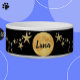 Black & Gold Moon Luna and Stars Personalisiert Pet Fütternd und Water Bowl bietet einen Vollmond/Luna mit goldenen Sternen auf einem schwarzen Hintergrund, der den Nachthimmel nachahmt. Personalisieren Sie es mit dem Namen Ihres Haustieres - funktioniert für einen Hund, eine Katze oder ein anderes Haustier - und ändern oder fügen Sie einfach Ihre eigenen Bilder, Texte oder Hintergrundbilder hinzu, um ein einzigartiges Design für Ihr Haustier zu erstellen oder es verlassen, wie es für eine coole Tierschale entwickelt wurde. Weitere personalisierte Haustierschüsseln sowie personalisierte Dekoration für Zuhause, Büro oder Freizeit finden Sie unter zazzle.com/DIYDecor.