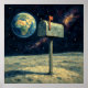 Arbeit eines Briefkasten auf dem Mond. Ein einzigartiges Stück, das sich den Briefkasten des Alltags in einem unerwarteten, anderweitig weltlichen Kontext neu vorstellt. Set auf der Mondlandschaft, mit einer leuchtenden Erde, die den dunklen Himmel leuchtet und wirbelt, bietet diese Kunst einen spielerischen, aber tief greifenden Kommentar zu Verbindung und Entfernung. Die textuellen Details der Mondoberfläche und der rustikale Charme des Briefkasten kontrastieren mit der kosmischen Grandeur. Dies ist ein Gesprächsstarter, eine Einladung, über die Grenzen der Kommunikation nachzudenken, und ein wunderbares Stück surrealer Kunst für jede Wohngestaltung. Seine traumhaften Farben und sein skurriles Konzept machen das perfekte Statement für diejenigen, die Science Fiction, Fantasie oder einfach Kunst, die sich von der Masse abhebt, Liebe leisten. Ideal, um jedem Zimmer eine persönliche Note und Charme zu verleihen. Diese Kunst kann angepasst, gedruckt und heruntergeladen werden.