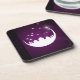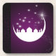 Arabische Illustration mit Silhouetten des Mondes, Sternen und einer Moschee auf einem lila Hintergrund.