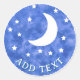 Mond und Sterne malen. Maßgeschneiderte Aquarelltöne. Design in Weiß und Blau. Text bearbeiten, um ihn anzupassen. Party Dekor und Geschenkidee.