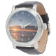 Uhr, Vintage Männeruhr mit schwarzem Lederarmband
