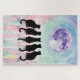 Five black cat silhouettes gaze at a dreamy lavender moon from a pastel rainbow fence. Soft watercolor art perfect for cat lovers and puzzle enthusiasts.