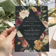 Elegante blumengeschmückte Hochzeitsfeiern, die in einem lang gestreckten Diamanten eingebettet sind, umgeben von Aquarellfarben, Rose und Grün in rustikalen Herbstfarben wie Pfirsich, Elfenbein, Rot, Bordeaux und Grün. Ein reichhaltiger schwarzer Hintergrund verleiht dieser schicken Einladung zu Herbst- oder Winterhochzeiten Tiefe und Eleganz.