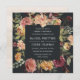 Unsere Moonlight Garden Hochzeitseinladung in einem einzigartigen quadratischen Format umrahmt Ihre Hochzeitsdetails mit bemalten Aquarellfarben-Rose und -mums in den Herbsttönen Bordeaux, Marsala, Rosa und Pfirsich, mit dunkelgrünem Blattwerk und Blätter. Eine elegante Wahl für Herbst- oder Winterhochzeiten mit üppigen Blumen auf einem dramatischen, schwarzen Hintergrund.