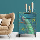 Rechte Seitenversion für passende Türen. "Mondlicht Pfau an Federn Aquamarines Gold-Decoupage-Gewehrpapier." Eines der beliebtesten Gemälde von Audrey Jeanne ist jetzt in Papiertaschentuch erhältlich. Dieser Pfau ist mysteriös und elegant mit vergoldeten Blättern, Pfauenfedern und einem Mitternachtsblau, aquamarin und aqua Hintergrund. In Ölpastellfarben von international lizenzierter Künstlerin und Designerin, Audrey Jeanne Roberts, urheberrechtlich geschützt.