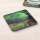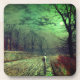 Untersetzer mit John Atkinson Grimshaw's Gemälde A Moonlit Abend (1880). Ein heimlicher Mond füllt den Nachthimmel des Viktorianischen Englands, als eine Frau in einer von Bäumen gesäumten Straße steht. Vor ihr ist ein beleuchtetes Gebäude. Ein großartiges Geschenk für Liebhaber der Romantik und des Viktorianischen Englands.
