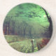 Sandstein Untersetzer mit John Atkinson Grimshaw's Gemälde A Moonlit Abend (1880). Ein heimlicher Mond füllt den Nachthimmel des Viktorianischen Englands, als eine Frau in einer von Bäumen gesäumten Straße steht. Vor ihr ist ein beleuchtetes Gebäude. Ein großartiges Geschenk für Liebhaber der Romantik und des Viktorianischen Englands.