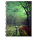 Notebook mit John Atkinson Grimshaw's Gemälde A Moonlit Abend (1880). Ein heimlicher Mond füllt den Nachthimmel des Viktorianischen Englands, als eine Frau in einer von Bäumen gesäumten Straße steht. Vor ihr ist ein beleuchtetes Gebäude. Ein großartiges Geschenk für Liebhaber der Romantik und des Viktorianischen Englands.