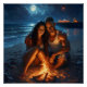 Ocean breezes whisper tales of love as they sit by the fire, their hearts beating as one.