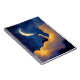 Capture your thoughts beneath the glow of the moon with this Moonlit Clouds Spiral Notebook. Featuring a serene illustration of a woman resting on golden clouds under a crescent moon and deep blue night sky, this notebook evokes calm, imagination, and quiet reflection.