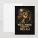 A magical moonlit forest scene where a young woman embraces a donkey-headed man as a mischievous fairy looks on, capturing the romance and whimsy of a midsummer night.