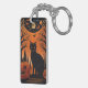 Un chat noir élégant est assis au-dessous d'une lune pleine et brillante, projetant une silhouette énigmatique contre le ciel orange vif. Des arbres en silhouettes et des citrouilles éparpillés ci-dessous apportent une touche de fantaisie à la scène. Saviez-vous que dans l'Égypte ancienne, les chats étaient vénérés comme des animaux sacrés et étaient souvent associés à la déesse Bastet, qui représentait la protection, le plaisir et une bonne santé ? Cette oeuvre capture la mystique de la nuit d'Halloween et le lien durable du félin avec le surnaturel.