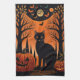 Eine schwarze Katze sitzt unter einem glühenden Vollmond und wirft eine rätselhafte Silhouette gegen den strahlenden Orangenhimmel. Die unten verstreuten silbernen Bäume und Kürbisse verleihen der Szene eine Touch von Launen. Wussten Sie, dass Katzen im alten Ägypten als heilige Tiere verehrt wurden und oft mit der Göttin Bastet in Verbindung gebracht wurden, die Schutz, Genuss und gute Gesundheit verkörperte? Dieses Kunstwerk fängt den Mystik von Halloween Nacht und die andauernde Verbindung des Katzen zum Übernatürlichen ein.