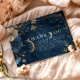 This enchanting celestial wedding design blends a deep midnight sky with glowing golden stars, soft moonlight, and richly detailed florals for a strikingly romantic aesthetic. The painted night sky creates a magical atmosphere, while the gold botanical accents add luxurious warmth and depth. Perfect for couples seeking an elegant celestial theme with a touch of whimsy and artful sophistication.