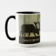 Eine Illustration einer Elch/Elch-Silhouette mit Antlers in der Waldgrafik, in Grüntönen und Grunelbraun. Jäger und Jäger Kunstdesign. Tierwelt Bereit, mit jedem beliebigen Namen personalisiert zu sein oder Text hinzuzufügen.