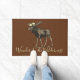Rustikale Elchtürmatte mit dem Satz "Wander in der Wildnis". Ein ansehnlicher Elch mit Geweih in erdigen Tönen, der eine große Anzahl von Geweih-Geweih-Spielern hat. Ein perfektes Geschenk für eine Hütte, einen Camper oder ein kleines nomadisches Haus.