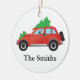 Mops Autofahren mit einem Weihnachtsbaum oben Keramik Ornament