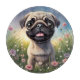 Niedlicher Mops Welpe in einem Feld von Blume.