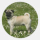Mops, der in den Blumen spielt Runder Aufkleber