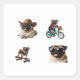Das Mops 4-Pack Sticker Set! Dieser bezaubernde Mops ist auf einer Rolle - ganz buchstäblich! Beobachten Sie, wie es sich zu einem Cowboy verwandelt, auf einem Mini-Fahrrad auf den Straßen trifft, ein Skateboard mit Flair stürzt und coole Eindrücke in stilvollen Sonnenbrillen ausstrahlt. Eine kleine Portion Mops-induziertes Lachen und Charme für alle Ihre Habe!