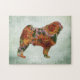 Mops Hund mit einem schäbigen Blumenmuster Profil auf einem strukturierten grünen Hintergrund. Ein hübsches Geschenk für einen Haustierbesitzer.