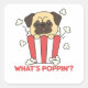 Mops Dog Popcorn Whats Poppin Funny Quadratischer Aufkleber