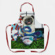 Ein niedlicher Mops-Hund und ein chinesischer Drache sitzen vor einer leeren Reisschale, die glücklich gewartet wird, zum Mittagessen gefüttert zu werden.