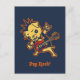 Cartoon-Mops mit einem stacheligen Mohikaner, einem Schädel-T - Shirt, einer roten Gitarre, einer rockin Haltung und "einem Mops-Rockertitel in der alten englischen Beschriftung. Lustig und cool, T - Shirts, Hoodies, Karten u. Geschenke.