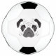 Der lustige Mops steht vor der Silhouette. Anpassbare Hintergrundfarbe (Weichzeichnen empfohlen).