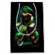 Ein wütender Freund hinter den Lenkern eines glänzenden grünen Fahrrads, das ein grünes Saint Patrick's Day Outfit trägt, das den Kopf dreht. Der Hund ist in einem festlichen Ensemble gekleidet, das mit einer grünen Bogen-Krawatte und einem passenden Oberhut versehen ist, der sich schmutzig über dem Kopf befindet. Das Outfit zeichnet sich durch die aufwändigen Entwürfe von Kleeblättern und Kobolden aus und macht deutlich, dass dieser Hund bereit ist, den St. Patrick's Day im Stil zu feiern.