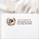 Die links Seite dieser Rücksendeadressen-Aufkleber zeigt ein Portrait eines hübschen kleinen Mops-Hundes. Das Bild ist in einem hübschen Herbstblumenkranz und Blätterkranz in Braun-, Bräunungs- und Cremetönen eingefasst. Ihr eigener Text ist rechts in schwarz und goldbraun.