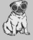 Retro, Vintag, Mops, Hund, Welpe, Sonnenbrille, schwarz und weiß, Tier, Haustier, niedlich, lustig, sonderbar, whimsical