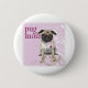 Entzückender Kitz-Mops, der auf einem empfindlichen rosa Hintergrund sitzt. Ein bestimmtes Muss für irgendeine Mamma eines Mops!