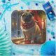 Mops mit Weihnachtsbeleuchtung Urlaub Pappteller