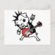 Cartoon Mops mit einem stacheligen Mohawk, Schädel T - Shirt, rote Gitarre, Rockin' Haltung und "Mops Rocker Caption in Old English Schritering. Cool und lustig, T - Shirt, Hunde, Karten & Geschenke.