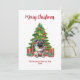 Niedlicher Mops "Frohe Weihnachtskarte" mit Weihnachtsbaum und Geschenk. Personalisieren Sie Ihren Text.