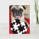 Mops mit einem Schwarzweiss-Puzzleherzen, das Sie wie benutzen können, ist oder zu Ihrer Wahl zu personifizieren.