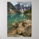 Der wunderschöne Moraine Lake im Banff National Park, Alberta Canada. Der vom Gletscher gefüttert See erhält von der "felsigen Blume" eine türkisfarbene Farbe, die das Sonnenlicht reflektiert.