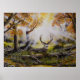 Druck des morgendlichen Aufstiegs Orignal Ölgemäldes von David E. Paul. Hirsche auf der Wiese mit Sonnenstrahlen, die durch