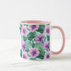 Genießen Sie stilvoll unsere Retro-inspirierte mit Monogramm Tasse mit hübschen lila Morgenblüten am Strand. Entworfen von Jo Story of Sketchbook Designs, ist es ein wunderbares Geschenk für tropische Blumenfreunde oder alle, die Lieben morgens herrliche Blume. Fügen Sie Ihrem Morgen eine Touch eleganten Peitschens hinzu!