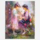Ein von der KI generiertes Bild von zwei Mädchen, die Blume in einem Garten bewundern.