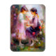 Ein von der KI generiertes Bild von zwei Mädchen, die Blume in einem Garten bewundern.
