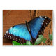 Un regard haut de fin à un papillon bleu semblant sain de Morpho avec miroiter les ailes bleues contre la voie de garage en bois, à la magie s'envole le conservatoire de papillon dans le Massachusetts.